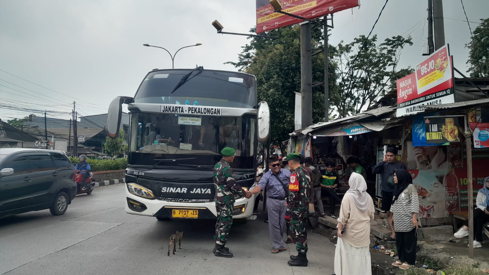Babinsa Koramil 08/Lemahabang Bantu Lancarkan Arus Balik Lebaran di Terminal Kali Jaya